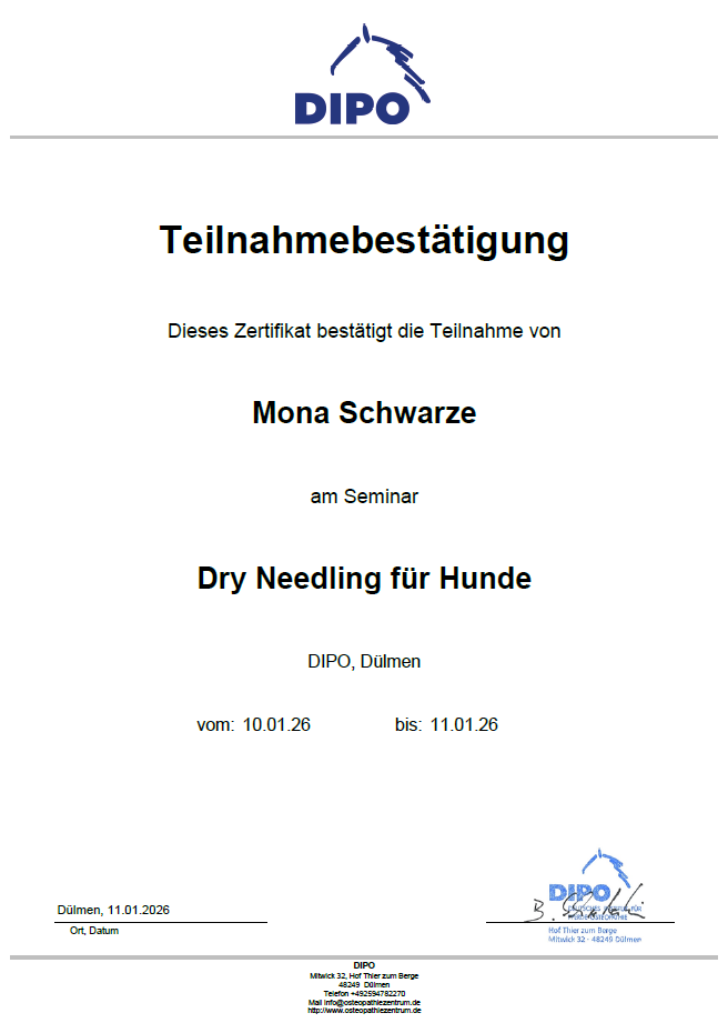Mit viel Herz und Fachwissen begleite ich Ihr Tier auf seinem Weg zu mehr Wohlbefinden. Ob akute Beschwerden, chronische Erkrankungen oder subtile Ungleichgewichte – mein Ziel ist es, Schmerzen zu lindern, Heilungsprozesse sanft zu unterstützen und das innere Gleichgewicht wiederherzustellen. Im Zentrum meiner Arbeit steht die Aktivierung und Stärkung der körpereigenen Selbstheilungskräfte – auf natürliche, sanfte und respektvolle Weise.
